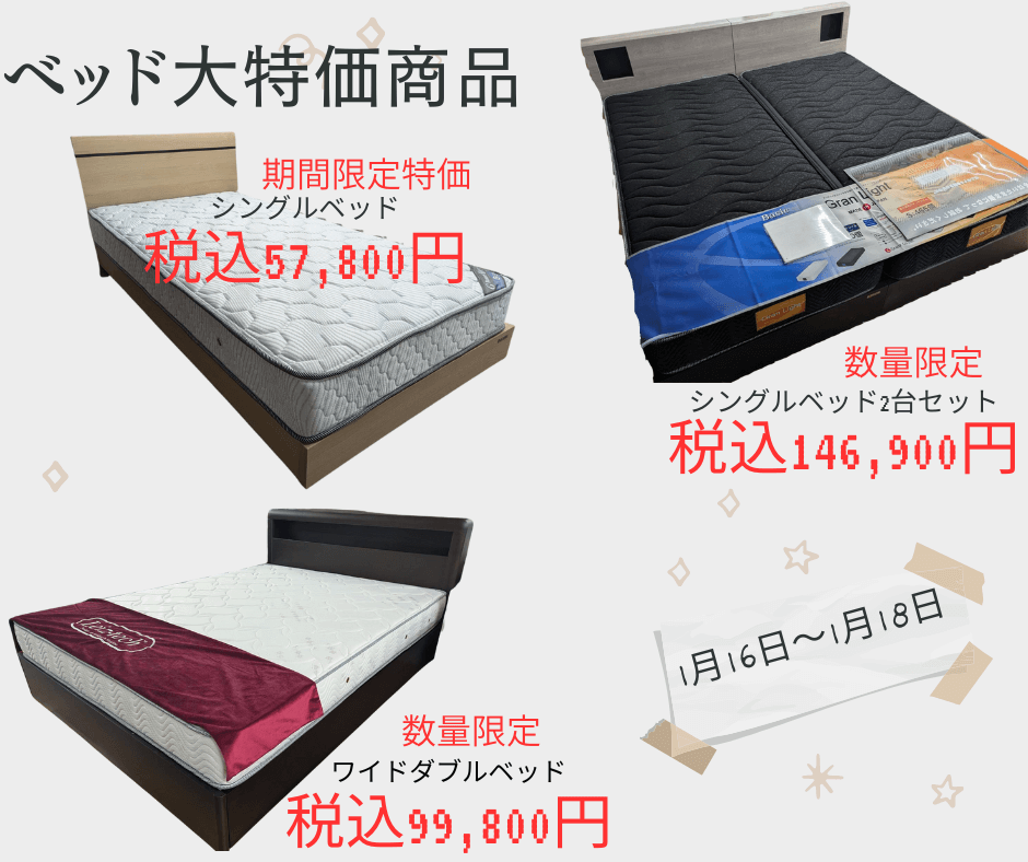 初売り企画 第二弾 工場直送大特価ベッド祭 2026年1月16日~1月18日